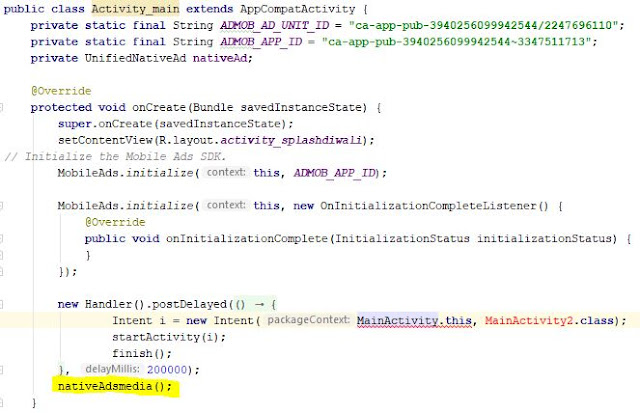 Note: just Add nativeAdmedia(); – highlighted in above image.